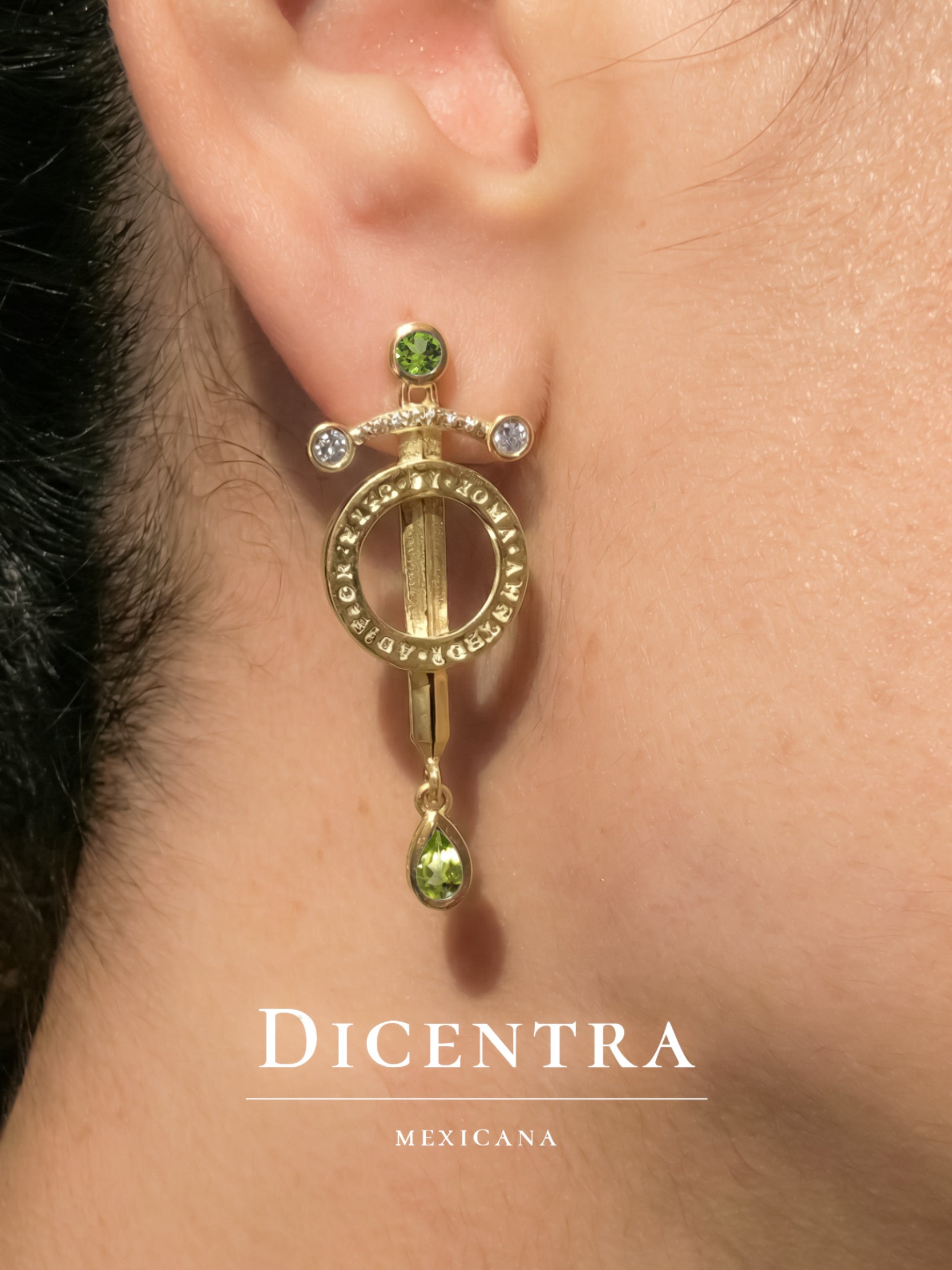 Aretes Fortuna que forma parte de la colección más vendida de la marca desde 2020. Diseñó inspirado en la rueda de la fortuna, representando aspectos clave y valiosos para la vida misma y el cumplimiento de nuestras metas.