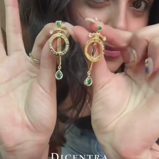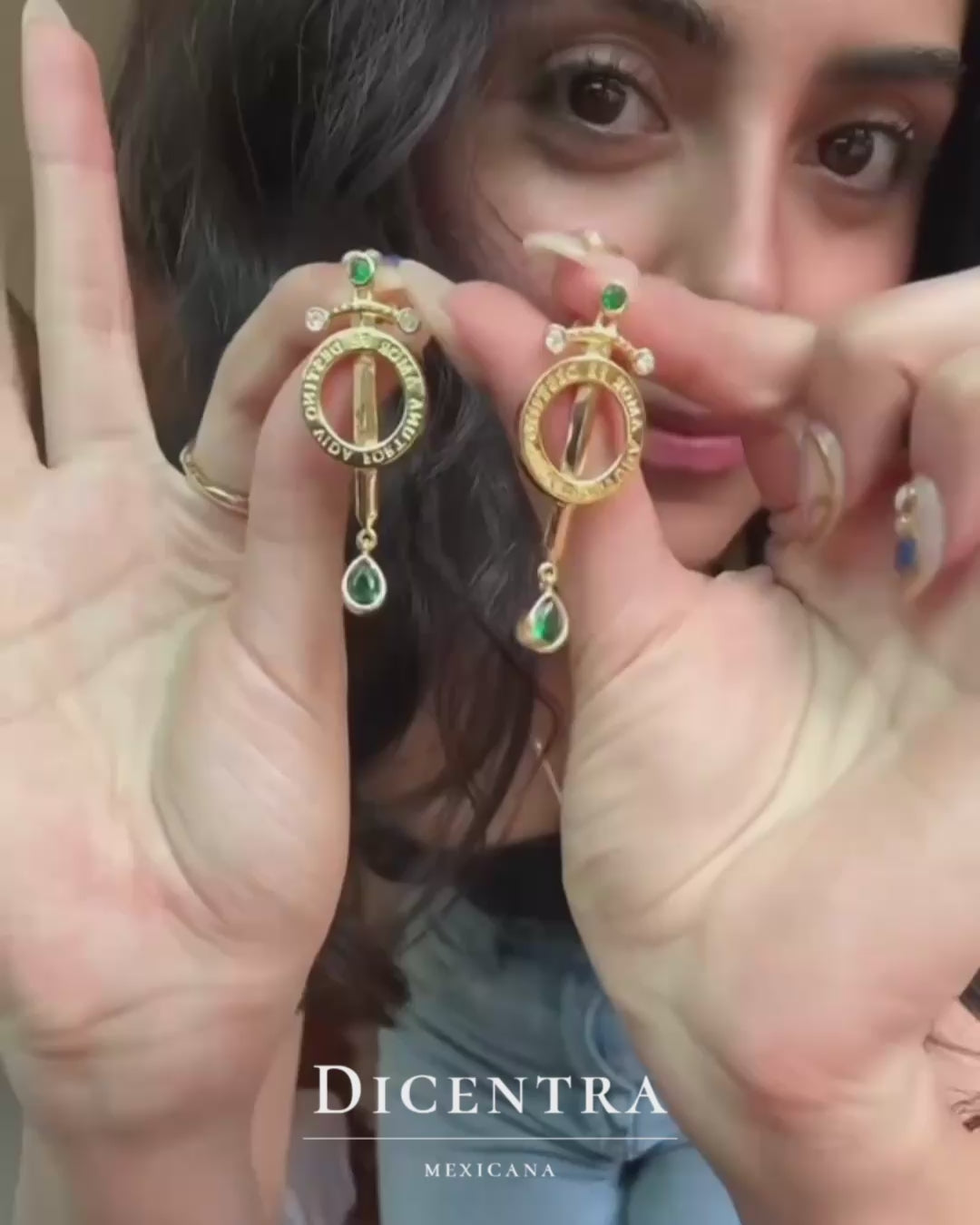 Aretes Fortuna que forma parte de la colección más vendida de la marca desde 2020. Diseñó inspirado en la rueda de la fortuna, representando aspectos clave y valiosos para la vida misma y el cumplimiento de nuestras metas.