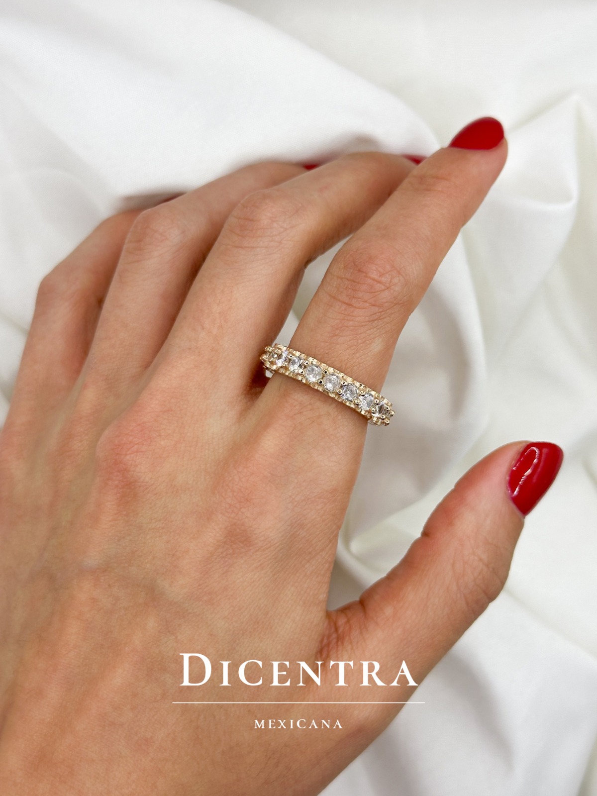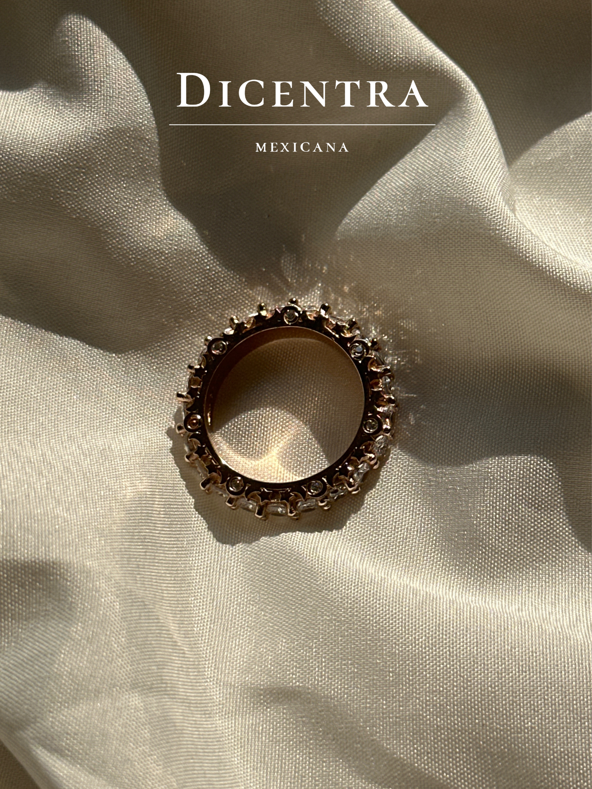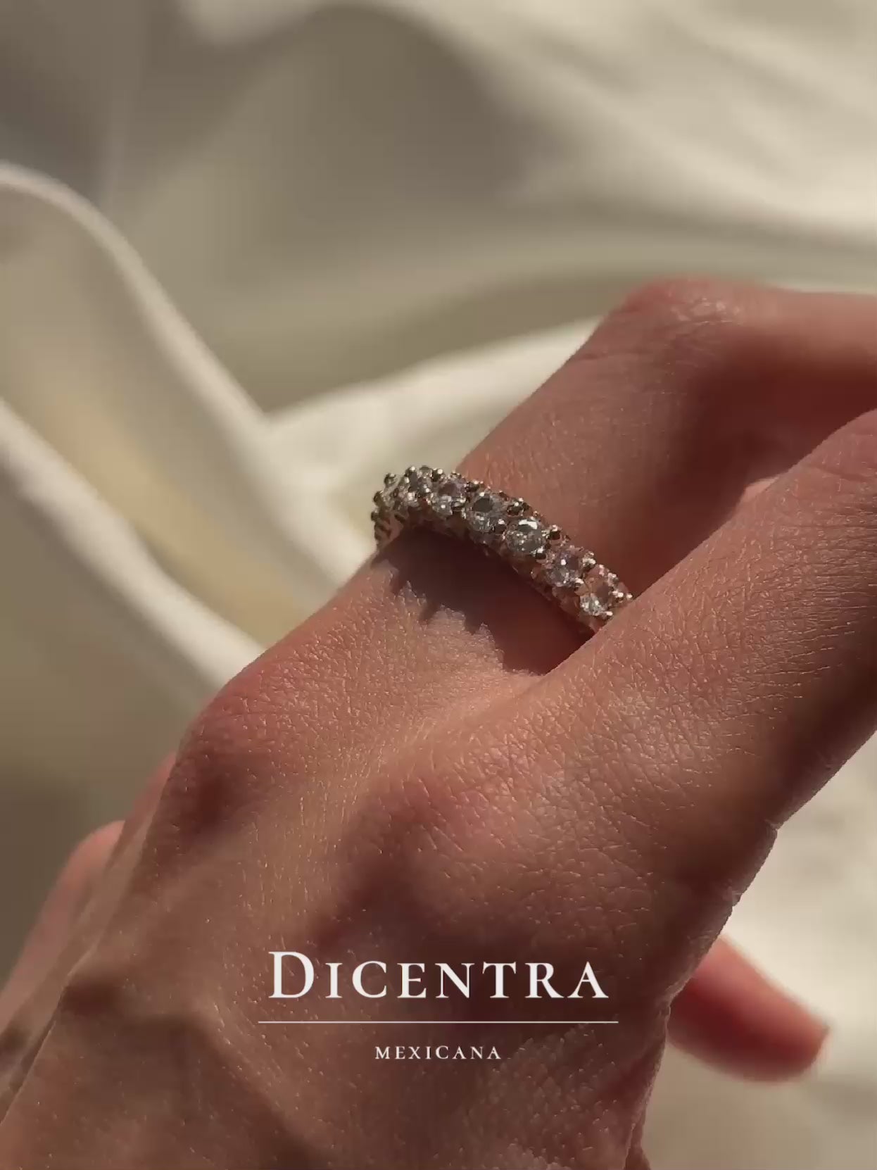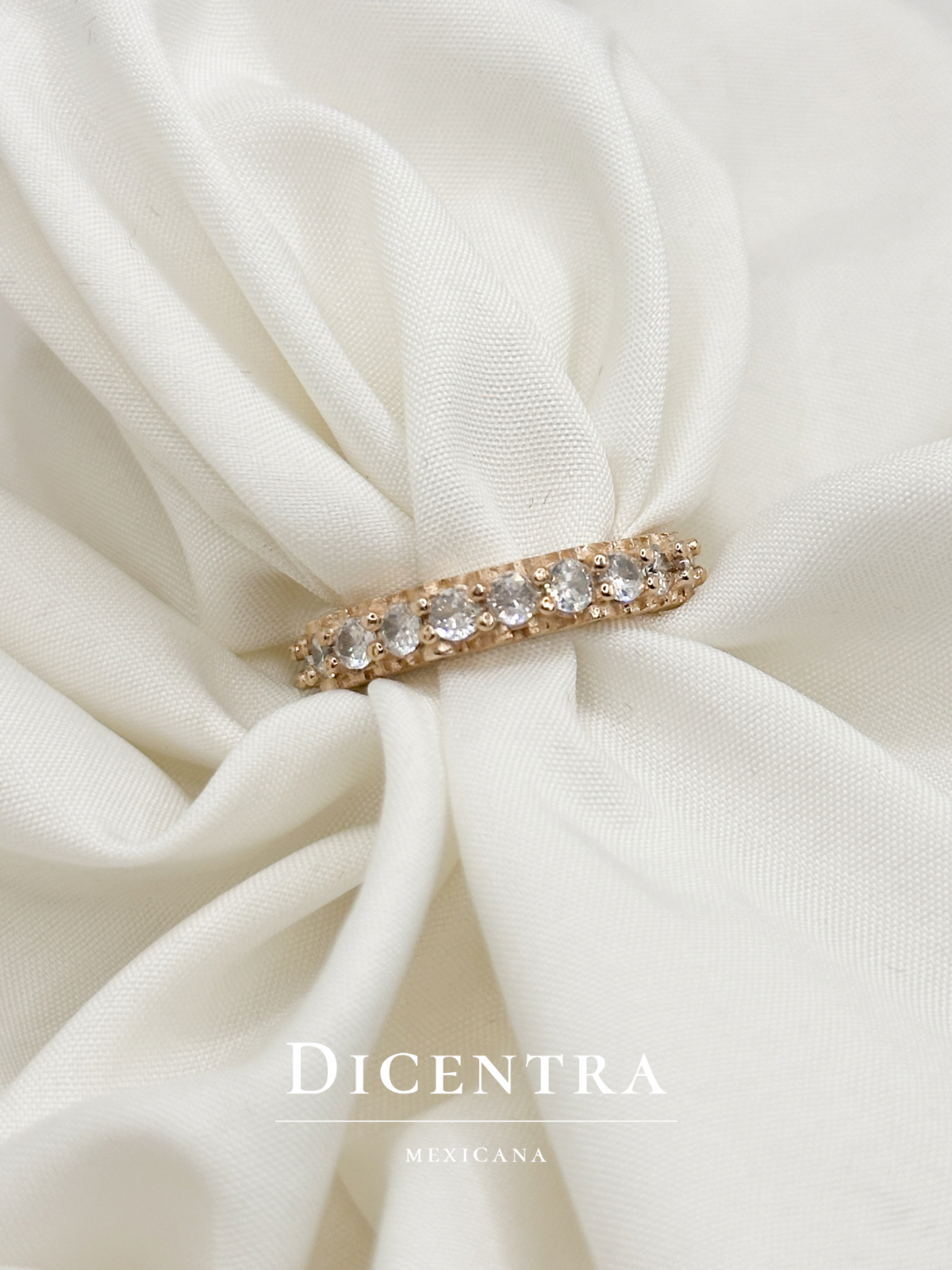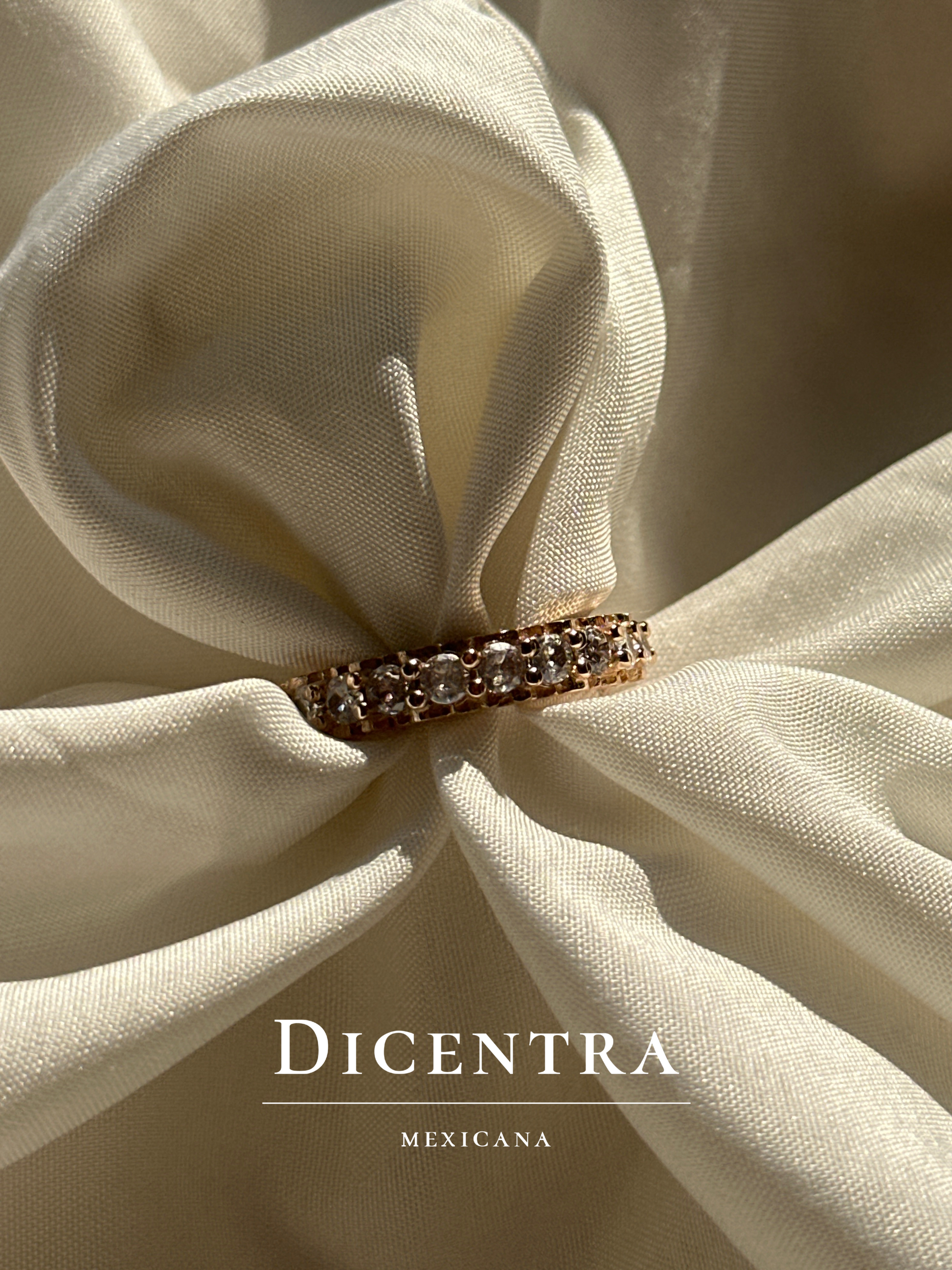 La pieza está disponible en circonia blanca y baño de oro rosa.