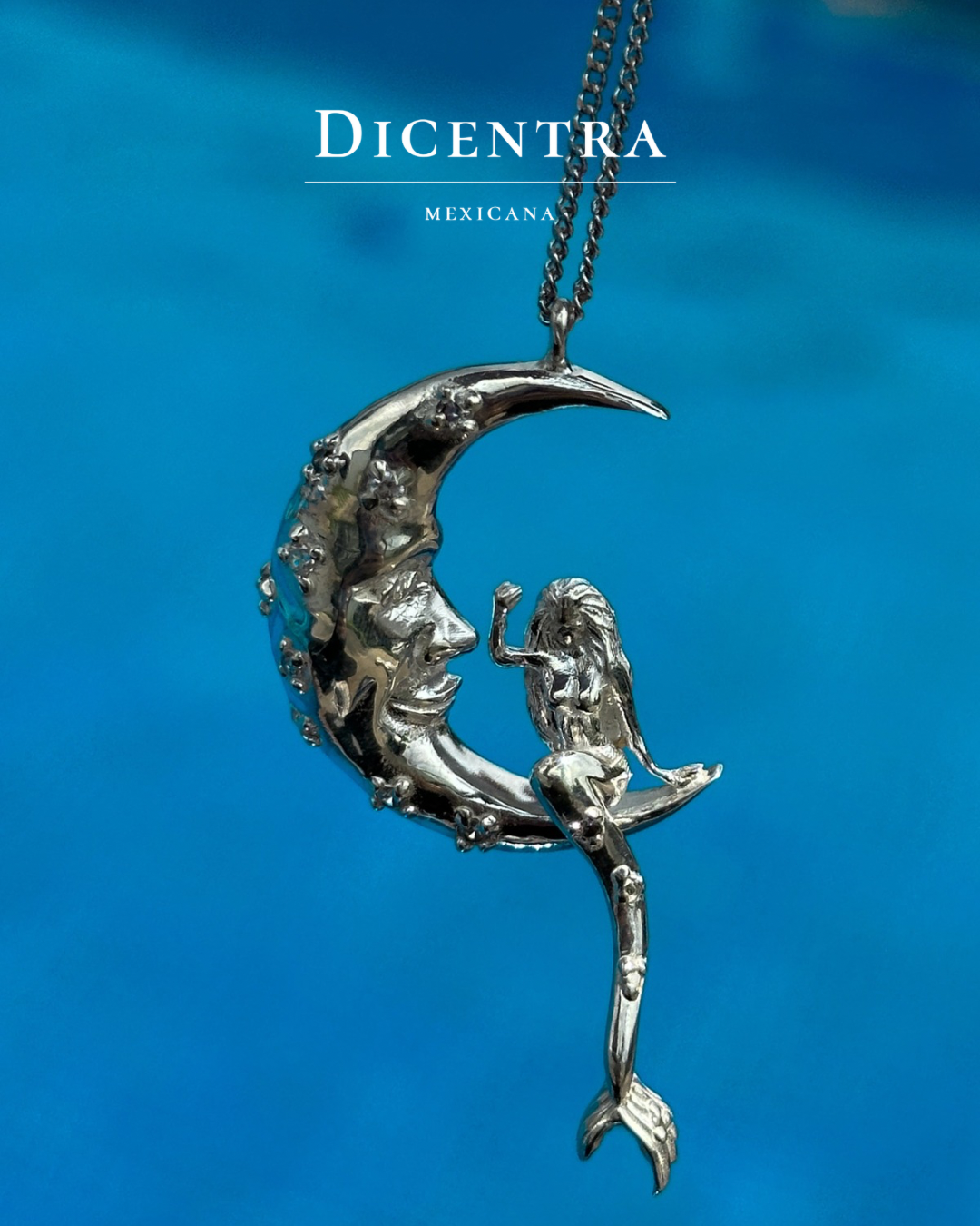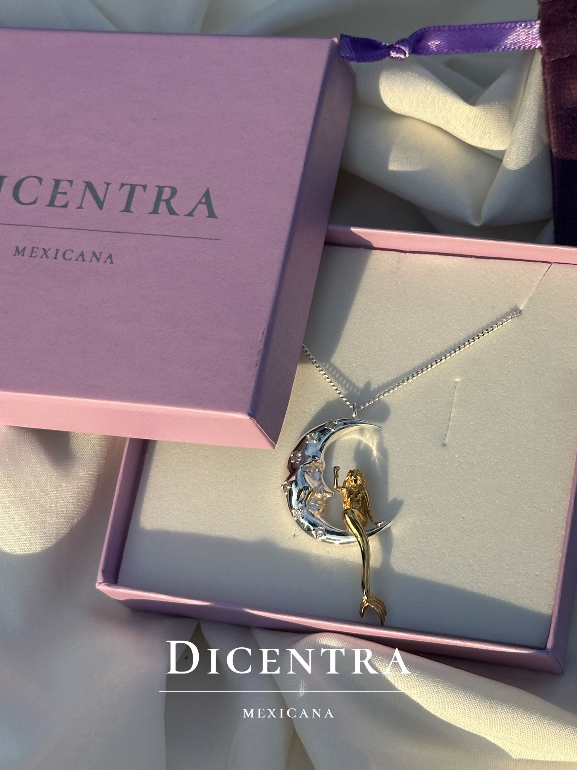 Por favor toma en cuenta que cada pieza es detallada a mano, por lo tanto pueden existir algunas variaciones en el acomodo de las circonias, y el montado de la sirena en la luna.